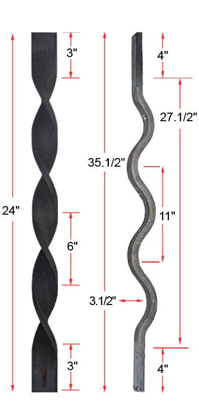 Twisted Bars provide a classic look for staircases and railings. Created with pride by Ohio craftsmen, these quality Iron balusters are the perfect focal point for any Iron railing.