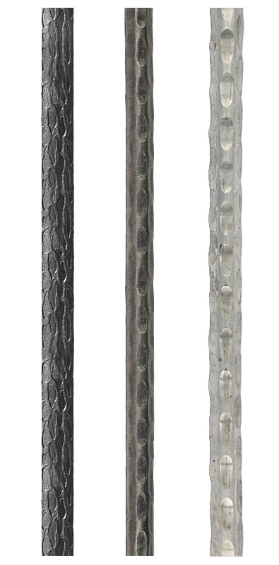 Hammered Iron balusters are produced in over 13 unique textures as shown below.
